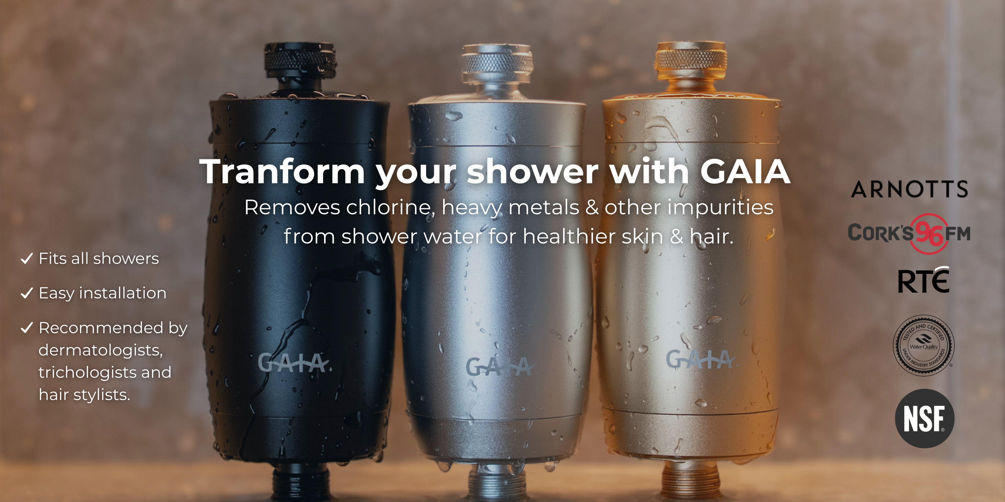The Gaia Shower filter removes 99% of chlorine, heavy metals and other contaminants for healthier skin, hair and well-being.
